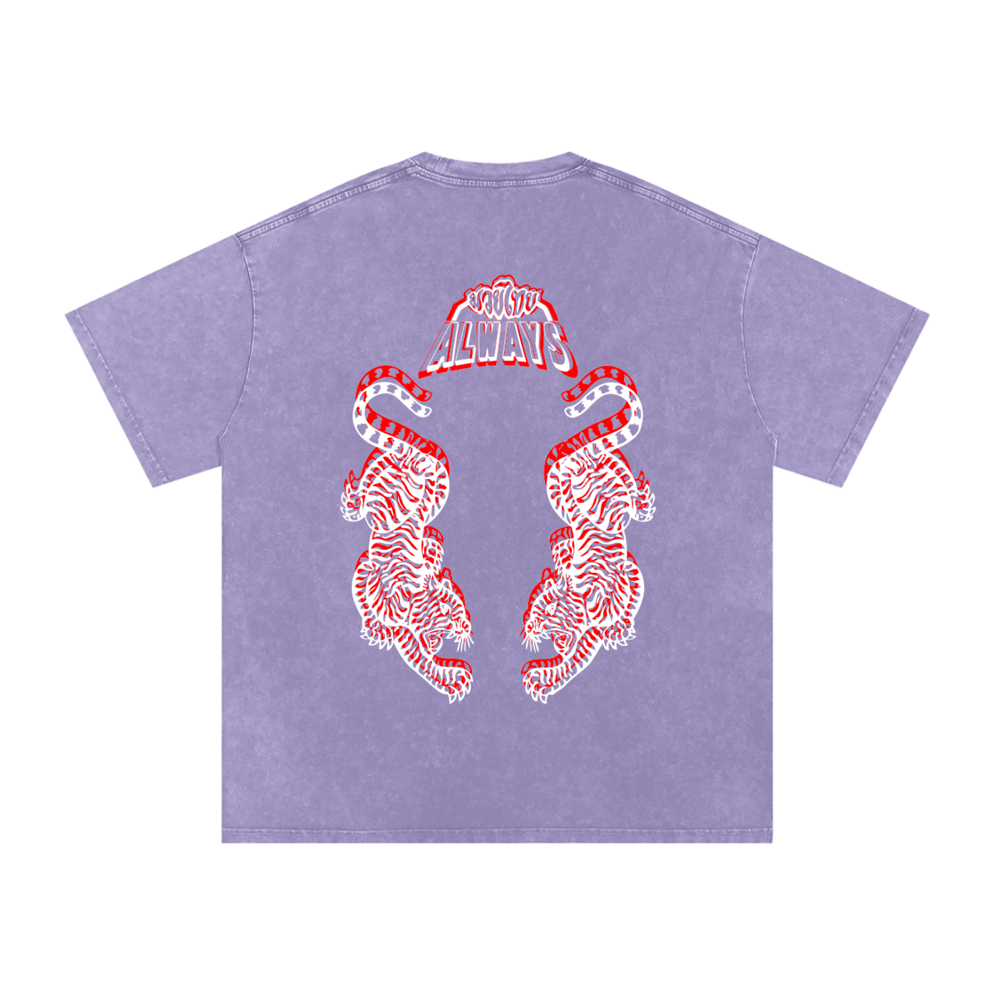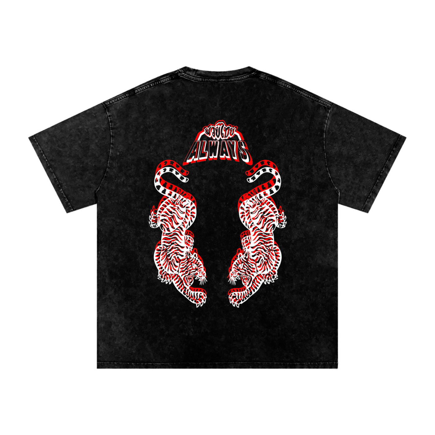 Always Twins Tigers Snow Washed Oversized Cotton T-Shirt